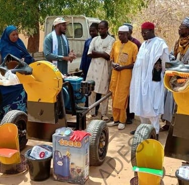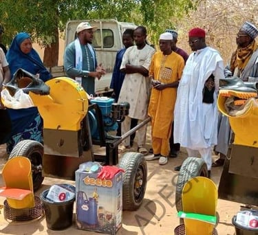 #ONG_ADESP Dans le cadre de la mise en œuvre du Programme Conjoint d’accélération des progrès en faveur de l’autonomisation économique des femmes rurales (JP RWEE II), l’ONG ADESP, partenaire du FIDA-Rome, a doté 20 villages des communes de Gazaoua et Tagriss de la région de Maradi en broyeurs et en matériel de production de biopesticides à base de plantes locales, 01 au 15 Avril 2026, en présence des autorités communales, le représentant de la direction de l’agriculture et le point focal FIDA Cette dotation a été suivie de la formation des points focaux des 20 villages sur l’utilisation des broyeurs. Un pas de plus vers le renforcement de l’autonomisation économique des femmes rurales