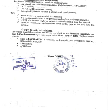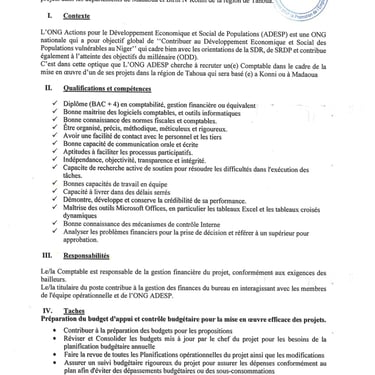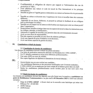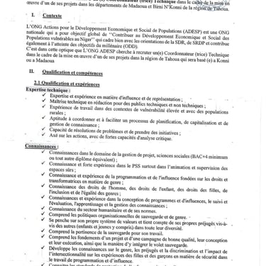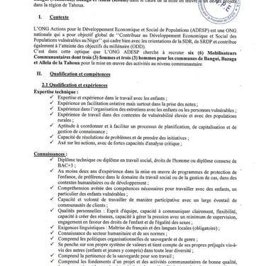 ONG_ADESP lance un avis d’appel d’offre d’emploi : De six (6) Mobilisateurs Communautaires D’un(e) Comptable D’une Coordinateur (trice) Technique Dans le cadre de la mise en oeuvre d’un de ses projet dans les départementd de Madaoua et Birnin N’Konni